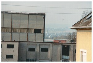 Die Farbfotografie zeigt die Didier-Werke in Bendorf während des Abrisses 1999. Im Hintergrund erkennt man den Neuwieder Stadtteil Heimbach-Weis. An der Stelle der Didier-Werke entstand im Jahr 2000 ein Einkaufszentrum (Kaufland).