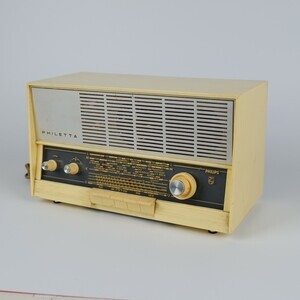 Ein kleines Tischradio, hergestellt 1966/1967 von Philips, Deutschland. Das Gehäuse ist aus elfenbeinfarbenen Kunststoff (Thermoplast) gefertigt. Die Frontseite ist in der horizontale geteilt. Oben, hinter einer Alufarbenen, gelochten Abdeckplatte der Lausprecher, darunter die Senderskala mit den Bedienelementen. Mit den Drehreglern lassen sich die Lautstärke, die Klangfarbe und die Sendestationen einstellen. Fünf Drucktasten stehen für MW/KW/LW und UKW sowie für Ein/Aus. Werden die Tasten von MW+KW gemeinsam niedergedrückt, ist der Tonband/Plattenspieleranschuss zugeschaltet. Auf der Rückseite befindet sich die UKW Antenne und die Anshlüsse für Plattenspieler/Tonband und 2. Lautsprecher.