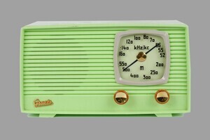 Ein kleines Tischradio, hergestellt von Graetz im Jahr 1959. Das Gehäuse ist vollständig aus Plastik (Thermoplast) in lindgrüner Farbe gefertigt. Mit dem Radio können nur Mittelwellensender empfangen werden. Die Senderskala besteht aus einer runden Anzeige auf der lediglich die KHz, keine Sendestationen im Klartext, angezeigt werden. Unterhalb, gibt es 2 Drehregler. Der Linke für Ein/Aus sowie Lautstärk, der Rechte dient der Sendereinstellung. Auf der Rückseite gibt es keine weiteren Anschlüsse. Ein Wurfantenne ist fest mit dm Radio verbunden. Dieses Gerät wurde zusätzlich in den Farben hellgrau, braun, gelb und rot verkauft.