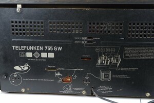 Der Telefunken 755 GW ist ein Tischgerät mittlerer Größe, aus dem Jahr 1937. Das Gehäuse ist aus Holz gefertigt, Nussbaum furniert und glänzend lackiert. Die Front ist, wie in dieser Zeit üblich, in der Mitte vertikalgeteilt. Links der Lautsprecher, rechts davon die Senderskala. Beides ist eingerahmt mit einen silberfarbenen Metallstreifen, wodurch dieser Teil optisch hervorgehoben wird. Unterhalb der Senderskala befinden sich 3 Drehregler mit denen der Empfänger bedient wird. Eingeschaltet wir das Gerät, in dem der linke Regler herausgezogen wird. Er dient gleichzeitig zur Regelung der Lautstärke. Der Mittlere Drehknopf hat eine Doppelfunktion. Mit ihm werden die Sender eingestellt und zwischen MW und LW gewählt. Auf der Rückseite sind Anschlüsse für einen Plattenspieler, Zweitlautsprecher und Antenne. Das Radio kostete 1937 etwa 250 Reichsmark. Über die Kaufkraft lässt sich annähernd ein heutiger Wert bestimmen, der bei ca. 1000 € liegen würde.
