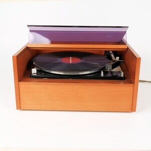 Ein stationärer Plattenspieler ohne eigene Endstufe. Das Chssis ist aus Holz, Nussbaum hell, gefertigt und als Abdeckung dient eine Plexiglashaube. Zum Betrieb reicht es aus, die Haube anzuheben und in den Führungsschienen nach hinten zu schieben, so dass alle Bedienelemente gut erreichbar sind. Der Antrieb erfolgt über Riemen und es können Schallplatten mit den Geschwindigkeiten 78/45/33/und 16 U/pM abgespielt werden. Die Geschwindigkeit 16 U/pM ist für Schallplatten gedacht die besprochen wurden. (Märchen etc). Der Tonarm wird mittel Absenkautomatic sanft auf die Schallplatte aufgesetzt, was für die Platte selbst sehr schonend ist. Das Gerät verfügt über keine eigene Endstufe, so dass ein externer Verstärker zum Betrieb notwendig ist.