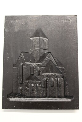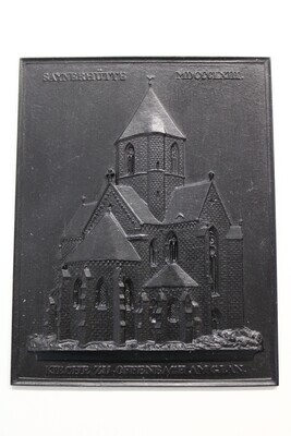 Sayner Neujahrsplakette für das Neujahr 1863. Dargestellt wird die Kirche zu Offenbach am Glan. Das Relief zeigt die fragmentarisch erhaltene ehemalige Benediktinerpropsteikirche Sankt Marien von Nordosten. Sie ist ein bedeutendes Denkmal aus der Zeit des Übergangs von der rheinischen Spätromanik zur Gotik. Um 1225 wurde die dreischiffige Basilika als Außenstelle des Metzer Klosters gegründet. Mit der Reformation wurde das Kloster aufgehoben und die Kirche war dem verfall preisgegeben. Anfang des 19. Jahrhunderts befand sich das Gebäude in einem so schlechten zustand, dass 1808/09 das Langhaus bis zur Vierung abgebrochen wurde. Das Abbruchmaterial wurde verkauft und der Erlös zum Erhalt des Restbaus verwendet. Somit blieben die Osthälfte mit dem Querhaus und das daran anschließende Südostjoch des Seitenschiffes sowie der santuariumsbereich mit Chorpolygon und den Seitenapsiden erhalten, wie die Neujahrsplakette zeigt. Das Modell erstellte Wilhelm Samuel Weigelt, Modelleur der Sayner Hütte. Die Plakette zeigt auf der Vorderseite oben die Beschriftung "SAYNERHÜTTE MDCCCLXIII." und unter dem Relief "KIRCHE ZU OFFENBACH AM GLAN."