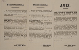 Wandanschlag in deutscher, niederländischer und französischer Sprache. Herausgegeben vom Generalgouverneur des von Deutschland besetzten Belgiens, Freiherr von Bissing, am 28. Januar 1916 in Brüssel "Durch von mir bestätigtes Feldgerichtsurteil ist der frühere belgische Soldat Paul Louis Mertens aus Lier bei Antwerpen wegen Spionage zum Tode verurteilt worden. Er hatte in dem bei Lier gelegenen Abschnitte der Antwerpener Fortifikation deutsche Feldstellungen abgezeichnet und versucht, die Zeichnungen sowie eine Notiz über einen Brückenschutz nach den Niederlanden zu bringen, um sie dort dem Feinde zugänglich zu machen. Bei dem Versuche der Grenzüberschreitung wurde er festgenommen. Das Urteil ist heute hier durch Erschiessen vollstreckt worden. Hasselt, den 25. Januar 1916. Der Militärgouverneur der Provinz Limburg, Keim, Generalmajor. - Ich bringe die Bekanntmachung hiermit zur Kenntnis der Bevölkerung des ganzen mit unterstellten Gebietes."