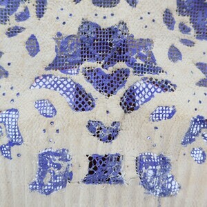 "Löcherblauhaube" in Creme mit Blauem Muster 1