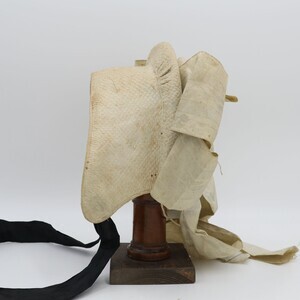Diese Trachtenhaube repräsentiert den Stil der an der unteren Mosel (spezifisch in Maifeld) getragenen "Boak". Sie besteht aus weißem Leinen, das komplett mit feinen Stichen im Schachbrettmuster gesteppt wurde. Auf der Rückseite wurde zur Dekoration eine große Schleife aus längsgestreiftem Seidenband angebracht das mit gesteiften Leinenstoff gedoppelt ist und dadurch seine Form hält. Innen rechts sind die Initialen "ED" und eine brillenähnliche Form mit blauem Garn eingestickt. Die langen schwarzen Bindebänder könnten zur Trauer hinzugefügt worden sein. Den Fotos ist ein Schnittmuster zugefügt.