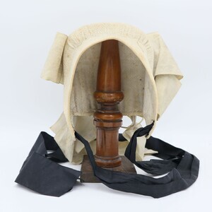 Gequiltete Trachtenhaube in Weiß mit Schwarzem Bindeband und Cremefarbenen Schlaufen hinten