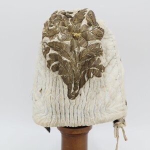 Gequiltete Weiße Trachtenhaube mit Goldener Metallstickerei
