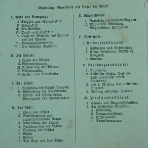 Diese Einführungsleitfaden von Prof. H. Prieß. diente als Lehrbuch für Physik an Landwirtschaftsschulen. Auf 99 Seiten mit 192 Abbildungen werden neben den Grundlagen, auch die Aspekte der Physik erläutert, die für die Landwirtschaft von Bedeutung sind. So zum Beispiel die Entstehung von bestimmten Wetterlagen oder die elektrotechnischen und mechanischen Eigenschaften von landwirtschaftlichen Maschinen.