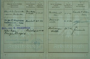 Das Arbeitsbuch wurde am 22.Mai 1936 vom Arbeitsamt Saarlautern (heute Saarlouis) ausgestellt. Dem Dokument ist zu entnehmen, dass Barbara Rodenkirch, geb 6.Jan. 1918, keine Berufsausbildung, dafür aber Landwirtschaftliche Kenntnisse besaß. Vom 2.12.1935 bis zum 30.5.1936 war sie als Kochlehrmädchen im Krankenhaus Saarlautern tätig. Danach war sie vom 10.8.1940 bis zum 26.3.1943 bei zwei verschiedenen Arbeitgebern als Hausmädchen angestellt.