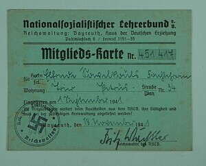 Das Arbeitsbuch wurde am 5.Dezember 1935 vom Arbeitsamt Trier ausgestellt. Dem Dokument ist zu entnehmen, dass Elfriede Savelkouls, geb. 12.April 1917, aus Trier, vom 1.4.1933 bis zum 1.4.1935 eine Berufsausbildung zur kaufmännischen Angestellten bei Ludwig Savelkouls in Trier absolviert hat. Dieser bot in seinem Betrieb Buchrevisionen und kaufmännischen Privatunterricht an. Nach ihrer Ausbildung arbeitete sie vom 1.7.1937 bis zum 30.6.1939 bei der Gemeinnützigen Baugesellschaft A. - G.. Anschließend kehrte sie am 1.7.1939 in den Betrieb von Ludwig Savelkouls zurück. In dem Arbeitsbuch befindet sich zudem eine Mitgliedskarte für den Nationalsozialistischen Lehrerbund, dem die Besitzerin am 1.November 1941 beigetreten war.