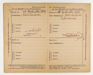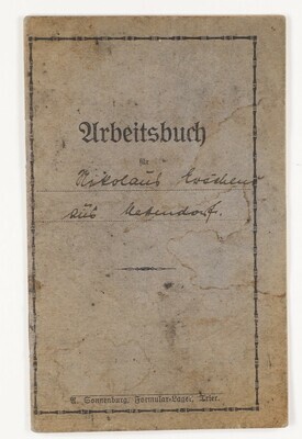 Das Arbeitsbuch wurde am 14,September von der Polizeiverwaltung Köperich ausgestellt. Dem Dokument ist zu entnehmen, dass der ehemalige Besitzer (Name unleserlich) vom 19. September 1929 bis zum 23.September 1939 als Fabrikarbeiter in den Plattenwerken „Cerabati“ in Wasserbillig tätig war. Die 1865 gegründete Firma „Cerabati“ war vor dem 1.Weltkrieg unter dem Namen „Utzschneider & Ed. Jaunez“ bekannt. Das in Wasserbillig ansässige unternehmen wurde in Jahr 1990 geschlossen.