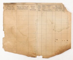 Nicht ausgefülltes Formular zur „Erbbiologischen Bestandsaufnahme“ aus den 1930er Jahren. In dem Formular heißt es u.a. " Der Fragebogen dient dem Gesundheitsamt zur Beurteilung der gesundheitlichen Verhältnisse, sowie der Berufs-, Bildungs- und Lebenstüchtigkeit Ihrer Sippe. Alle Fragen müssen klar und ohne jede Vertuschung, mit genauen Angaben, beantwortet werden. In den einzelnen Verwandtschaftsgruppen sind s ä m t l i c h e Sippenangehörige, also auch Todgeburten, Kleingestorbene, Verschollene, Uneheliche, Stiefgeschwister usw. dem Alter nach auf zu führen".
