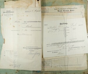 In dieser Mappe befinden sich diverse Belege der Spar und Darlehenskasse aus Kail. Es sind Einzahlungsbelege, Darlehensrückzahlungen oder auch Rechnungen und Frachtbriefe die direkt oder indirekt mit der Kasse zu tun hatten. Alle aus dem Jahr 1910