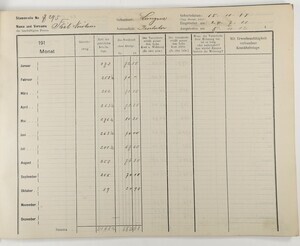 Der Name des Betriebs, aus dem dieses Lohnlistenbuch stammt findet sich nirgendwo, genauso wenig um was für einen Betrieb es sich genau handelte. Man kann jedoch davon ausgehen, dass dieses Lohnlistenbuch aus Luxemburg stammt, da es zwar in Deutsch ist, die Löhne aber in Francs und nicht in Reichsmark angegeben sind. Pro Seite findet sich jeweils die Lohnliste einer Person, von der Name, Nationalität und Geburtsdatum angegeben sind. Dazu, wann sie in dem Betrieb anfing und wann sie wieder aufhörte. Das früheste Datum über den Beginn des Dienstes ist der 28.Juni 1898. Die letzte verzeichnete Auszahlung eines Lohnes erfolgte im Jahr 1921. Das Lohnlistenheft war ursprünglich so gestaltet, dass für jeden einzelnen Monat eines Jahres verzeichnet werden konnte, wie viele Tage ein Angestellter gearbeitet hat und wie viel ihm dafür gezahlt wurde. Der ehemalige Besitzer hat in den Spalten für die Monate jedoch immer nur den Jahreslohn verzeichnet und wie viele Tage pro Jahr gearbeitet wurden. Auffällig ist, dass in dem Betrieb auffallend viele Arbeiter aus Galizien stammen, das an der polnisch-ukrainischen Grenze liegt und zu dieser Zeit eigentlich in keiner engeren Beziehung zu der Region Trier stand.