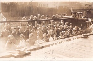 Gruppenfoto einer Hafenrundfahrt im Hamburger Hafen 1938
