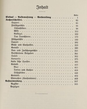 Ein Kochbuch von Hedwig Henl aus dem Jahr 1914 mit 580 Seiten. Auf den ersten 65 Seiten werden Hinweise zum Einkauf, zur Aufbewahrung und zur Vorbereitung der verschiedensten Lebensmittel aufgelistet. Danach folgen zahlreiche Rezepte, bei denen auch immer die Kosten und die Zubereitungszeit des jeweiligen Gericht angegeben ist. Außerdem wird in dem Kochbuch zudem die vegetarische Kost berücksichtigt, indem vegetarische Rezepte mit einem Sternchen markiert sind. Dem Kochbuch liegen zudem einige Kärtchen mit handgeschriebenen Rezepten und einige Rezepte aus anderen Druckerzeugnissen bei.