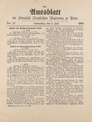 Sammlung: Amtsblatt der königlich preußischen Regierung zu Trier (1868) 1889 – 1900