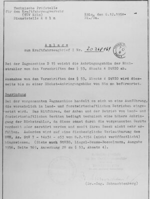 Deutz D 15 Traktor - Kraftfahrzeugbrief