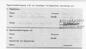 Eine Allgemeine Betriebserlaubnis der NSU Werke, Neckarsulm, für ein Quickly-Moped, Baujahr 1957. Das Fahrzeug wurde am 10. Juli 1957, von der Firma Lentes in Schweich, an Frau Ilse Schuck, verkauft und erstmals in Betrieb genommen. Gemäß den Eintragungen hatte die Quickly einen 40 ccm Motor mit 1,3 PS und war für eine Geschwindigkeit von 40 KM/Std zugelassen. Irgendwann gelangte das Moped in den Besitz von Ewald Ströher aus Kleinich/Fronhofen, der es unserem Museum vermachte. Das zur Betriebserlaubnis gehörende Moped befindet sich heute in unserer Ausstellung.
