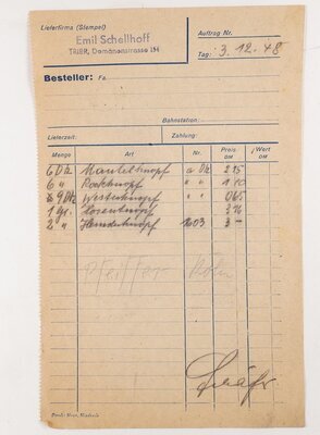 Konvolut von losen Geschäftsbelege der Firma Rassier (1946 bis 1952)