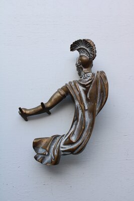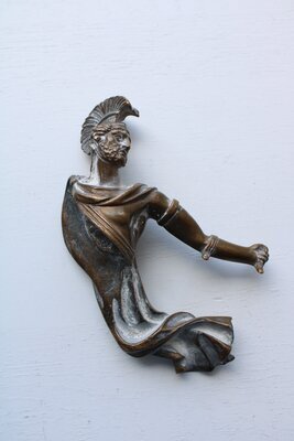 Drei Modellteile aus Bronzeguss zum Abformen der Statuette des römischen Schwertkämpfers bzw. Fechter "Tatius", eines Papierdrückers, der im Musterbuch bzw. Katalog der Sayner Hütte angeboten wurde. Der dann in Eisen gegossene Fechter wurde auf eine langrechteckige Plinthe mit umlaufendem Akanthusfries und Perlstab montiert. Die Modellteile, zu denen noch ein zweiter Schwertarm und ein Rundschild gehören zeigen Reste von weißem Puder. Nach dem Sayner Modellverzeichnis Nr. 128: "Briefhalter: Tatius". Nach dem Gleiwitzer Preiscourant von 1847 No. 66/67 - 6: "Fechter, kämpfend mit Schwert" als Briefbeschwerer". Als Pendant gilt der "Fechter, kämpfend mit Speer". bzw. nach dem Sayner Modellverzeichnis "Romulus". Vgl. 4.362