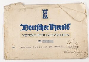 Prämienrechnung der Deutschen Herold Versicherung (1938) für Anna Rassier