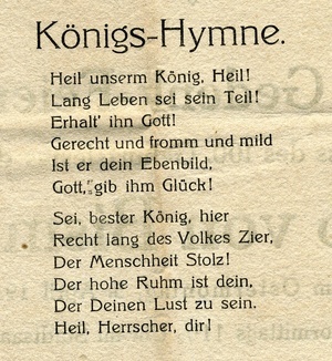 Einladung zur Gedenkfeier aus Anlass des 100. Geburtsfestes von Otto v. Bismarck am Ostermontag den 5.4.1915, vormittags 11.30 Uhr im Stadtsaal Speyer mit Programm und Königshymne auf der Rückseite. Im Historischen Museum der Pfalz war vom 29.4.2014 bis 24.9.2017 die Ausstellung "1914 - 1918. Die Pfalz im Ersten Weltkrieg" zu sehen. Auf einen öffentlichen Aufruf hin meldeten sich zahlreiche Privatpersonen, ihre Objekte wurden in dieser Sammlung erfasst und z. T. auch in der Ausstellung gezeigt. Die Objekte befinden sich im Eigentum der Privatpersonen und sind nicht Teil der Sammlungen des Historischen Museums der Pfalz.