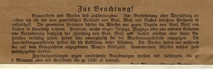 Karte mit Lebensmittelbezugsscheinen für Brot, Mehl und Kuchen vom 30.5. 1915. Gültig für Speyer in den beiden Wochen vom 30.5. und 12.6. 1915. Im Historischen Museum der Pfalz war vom 29.4.2014 bis 24.9.2017 die Ausstellung "1914 - 1918. Die Pfalz im Ersten Weltkrieg" zu sehen. Auf einen öffentlichen Aufruf hin meldeten sich zahlreiche Privatpersonen, ihre Objekte wurden in dieser Sammlung erfasst und z. T. auch in der Ausstellung gezeigt. Die Objekte befinden sich im Eigentum der Privatpersonen und sind nicht Teil der Sammlungen des Historischen Museums der Pfalz.