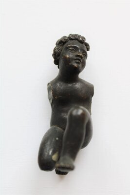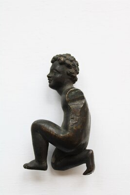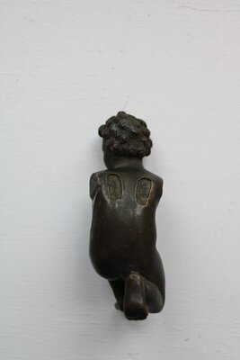 Modell aus Messingguss, das einen knieenden Putto ohne Arme darstellt. Kleinere Tafelleuchter der Königlich-Preußischen Eisengießereien Gleiwitz, Berlin und Sayn zeigen u.a. einen knieenden Putto bzw. einen knieenden Amor mit Flügeln und einem Bogen in der Hand.