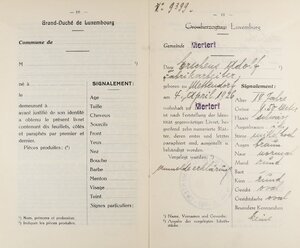 Arbeiter- und Dienstbotenlivret des am 4.April 1926 in Mettendorf geborenen Adolf Erschens. Dieses Arbeitsbuch wurde im Jahr 1940 von der Gemeindeverwaltung Mertert in Luxemburg für den damals 14-jährigen Adolf ausgestellt. Darin ist vermerkt, dass er in einer Mosaikplattenfabrik in Wasserbillig als Fabrikarbeiter angestellt war.