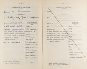 Arbeiter- und Dienstbotenlivret des am 17.8.1917 in Grevenmacher geborenen Jean-Baptiste Weffling. Dieses Arbeitsbuch wurde von der Gemeindeverwaltung Grevenmacher in Luxemburg für den damals 19-Jährigen ausgestellt. Darin ist vermerkt, dass er vom 14.12.1936 bis zum 15.10.1940 für einen Jean Bernard – Maasard tätig war. Außerdem arbeitete er vom 4.1.1939 bis zum 9.5.1940 in einer Mosaikplattenfabrik in Wasserbillig. Am 9.5.1940 wurde er über die Fabrik Mitglied der Bezirkskrankenkasse in Wasserbillig.Dem Arbeitsbuch liegt außerdem ein Auszug aus dem Strafregister bei.