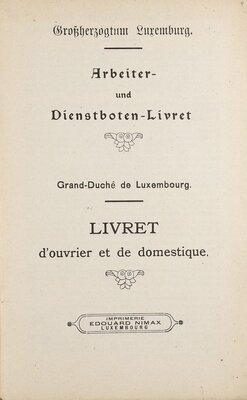 Arbeiter- und Dienstbotenlivret der am 25.2.1916 geborenen Albertine Engel. Dieses Arbeitsbuch wurde am 3.3.1937 von der Gemeindeverwaltung Mertert in Luxemburg für die damals 21-Jährige ausgestellt. Darin ist vermerkt, dass sie seit dem 7.3.1937 in einer Mosaikplattenfabrik in Wasserbillig als Arbeiterin angestellt war.