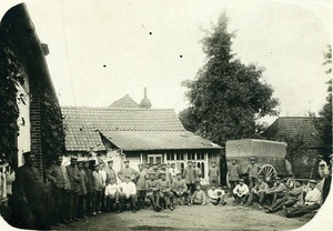Die Aufnahme zeigt eine Gruppe von Soldaten. Die Personen sind um eine Tafel gruppiert. Tafelaufschrift: "Im Walde Tuxow von der Gulaschkanone verlassene Mannschaften. 15.10.1915" Geschrieben am 27.11.1915 in Marquilles. Gestempelt: 23.11.1915. Empfänger der Postkarte ist Ludwig Schaupp. Im Historischen Museum der Pfalz war vom 29.4.2014 bis 24.9.2017 die Ausstellung "1914 - 1918. Die Pfalz im Ersten Weltkrieg" zu sehen. Auf einen öffentlichen Aufruf hin meldeten sich zahlreiche Privatpersonen, ihre Objekte wurden in dieser Sammlung erfasst und z. T. auch in der Ausstellung gezeigt. Die Objekte befinden sich im Eigentum der Privatpersonen und sind nicht Teil der Sammlungen des Historischen Museums der Pfalz.