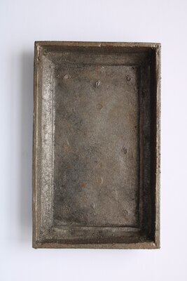 Unbearbeiteter (ungeputzter) Abguss in Eisen einer Plinthe, die kombiniert mit einer kleinen liegenden Hirsch-Skulptur Bestandteil eines Briefbeschwerers ist (vgl. 9.077-9.080). Die Plinthe zeigt eine umlaufende Akanthusblattzierleiste. Die Plinthenform und Gestaltung war charakteristisch für die Königlich-Preußischen Eisengießereien Gleiwitz, Berlin und Sayn. Der Briefbeschwerer oder Papierdrücker mit liegendem Hirsch ist in dem Katalog bzw. "Modellbuch" der Sayner Hütte aus der Zeit um 1870 abgebildet. Das Modellbuch wird im Original im Historischen Archiv Krupp in Essen aufbewahrt. Die Güsse stammen aus dem Nachlass des Formers Paul Thewald, der in den 1920er Jahren auf der Sayner Hütte gearbeitet hat und nach dem Zweiten Weltkrieg in der Kunstgießerei der Concordiahütte (Bendorf-Mülhofen).