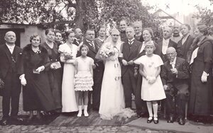 Gruppenporträt der Hochzeitsgesellschaft Paula und Walter Meynen