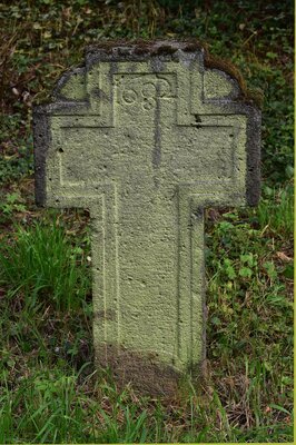 Steinkreuz mit sehr großem Sockel aus Granit. Im Sockel befindet sich eine Aussparung für eine verloren gegangene Plakette für Namen und Daten des Vorstorbenen. Auf dem Sockel befindet sich ein eher kleines Steinkreuz aus Sandstein. An diesem aus Gusseisen der Corpus des Gekreuzigten. Das Grabdenkmal steht nicht an seinem originalen Standplatz, sondern wurde von einem aufgelassenen Grab in das Museum übertragen.