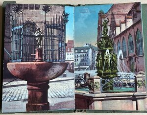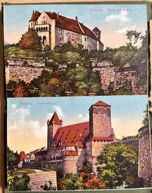 Ein Sammler aus Karton. Er enthält zwanzig verschiedene, farbige Postkarten von Nürnberg die miteinander verbuinden sind. (Klappkarten). Enthalten sind die wichtigsten Sehenswürdigkeiten, die Nürnberg zu bieten hat. Die Burg. die Kaiserstallungen, Heiliggeistpital, das Gänsemännchen, der Tugendbrunnen und vieles mehr. Alle Karten können auch als Postkarten verwendet werden.