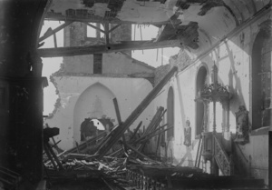 Die Aufnahme zeigt die zerstörte Kirche von Illiers in Frankreich. Auf der Straße hinter der Kirche steht ein deutscher Soldat. Im Historischen Museum der Pfalz war vom 29.4.2014 bis 24.9.2017 die Ausstellung "1914 - 1918. Die Pfalz im Ersten Weltkrieg" zu sehen. Auf einen öffentlichen Aufruf hin meldeten sich zahlreiche Privatpersonen, ihre Objekte wurden in dieser Sammlung erfasst und z. T. auch in der Ausstellung gezeigt. Die Objekte befinden sich im Eigentum der Privatpersonen und sind nicht Teil der Sammlungen des Historischen Museums der Pfalz.