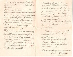 Der dreiseitige Brief auf einem gefalteten Doppelbogenwurde am 2. August 1906 aus der französischen Stadt Baccarat geschrieben. Adressat und Schreiber sind leider unbekannt. Der Verfasser bedankt sich für den zuvor erhaltenen Brief. Es gehe allen gut und es werde an den Adressaten gedacht. Jemand aus dem Bekanntenkreis werde bald heiraten. Man vermisse sich und warte auf baldige Neuigkeiten. Man umarme sich in Gedanken von weitem und hofft auf ein baldiges Wiedersehen. Der Brief enthält viele Floskeln und entspricht dem formellen, höflichen Stil des 19.Jahrhunderts.