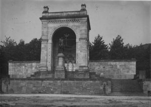 Die Aufnahme zeigt eine beschädigte Kreuzigungsgruppe. Der Ort und der genaue Zeitpunkt der Aufnahme sind nicht bekannt. Im Historischen Museum der Pfalz war vom 29.4.2014 bis 24.9.2017 die Ausstellung "1914 - 1918. Die Pfalz im Ersten Weltkrieg" zu sehen. Auf einen öffentlichen Aufruf hin meldeten sich zahlreiche Privatpersonen, ihre Objekte wurden in dieser Sammlung erfasst und z. T. auch in der Ausstellung gezeigt. Die Objekte befinden sich im Eigentum der Privatpersonen und sind nicht Teil der Sammlungen des Historischen Museums der Pfalz.