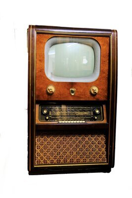 Die Sachsenwerk Licht- und Kraft-AG wurde 1946 enteignet und in eine Sowjetische Aktien Gesellschaft umgewandelt. Ab 1949 wurden Fernsehgeräte für den russischen Markt produziert. 6 Jahre später wurde der Betrieb in die DDR eingegliedert. 1956 erfolgte erneut eine Umbenennung in VEB Rafena Werke Radeberg. 1958 wurde unser Objekt, eine TV - Radio Standkombination, in dunklem Holz gefertigt. Im oberen Bereich ist der 43cm große Bildschirm angeordnet, darunter die Drehschalter zur Optimierung der Bild und Tonqualität. Unterhalb befindet sich das Radio mit mehreren Druck und Drehschalter zum bedienen des Rundfunkempfängers. Im unteren Bereich, hinter einer Stoffabdeckung befindet sich der Hauptlautsprecher, zusammen mit drei Kleineren.