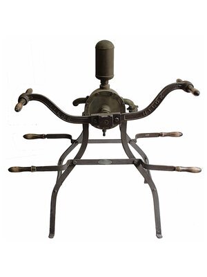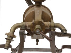 Gusseiserne mechanische Weinpumpe der Firma Hilge aus Mainz. Baujahr: 1894.