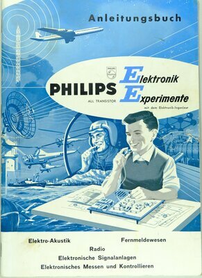 Seit Ende 1963 gab es von PHILIPS Elektronik Experimentierkästen und ergänzend dazu, ein Anleitungsbuch für Experimente. Unser Anleitungsbuch, im DIN A 4 Format, ist im Innern zwei geteilt. Im oberen Teil finden sich sehr ausführliche technische Erläuterungen, im Unteren sind die, mit vielen Bildern unterstützten, Bauanleitungen zu finden. Zum Beispiel für einfache Verstärker, Morsegeräte, Radiogeräte, Blinklichter, einfache Alarmanlage und vieles mehr.