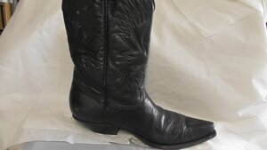 Ein Paar Beige Damen-Stiefel aus Leder und Stoff. Spitze Form, Schuhgröße 43. Die Schuhe haben einen Blockabsatz (7 cm). Der Sommerliche Stiefel verfügt über eine Schuhkappe aus Leder, Ziernähte und einen Reißverschluss an der Innenseite. Datiert auf die 1970er Jahre.