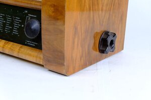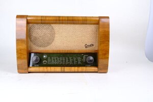Ein Holzchassis, Nussbaum furniert, mit vielen Rundungen aus dem Jahr 1950/51 Die Frontseite wird zu 2/3 durch den Stoffbezug bedeckt, hinter dem der Lautsprecher untergebracht ist. Darunter, abgegrenzt durch eine halbrunde, furnierte Holzleisten, dominiert die Senderskala, die rechts und links durch jeweils einen Drehknopf begrenzt wird. Ein Magisches Auge und ein Sichtfenster für die Wellenbereichsanzeigeergänzen die Frontseite. An der linken Seitenwand ist ein weiterer Drehknopf angebracht, mit dem die Klangfarbe reguliert werden kann. An der rechten Seitenwand befindet sich ein Drehschalter mit tiefen Griffmulden mit dem die Wellenbereiche bzw. der Plattenspieler ausgewählt werden kann. Das Radio kostete etwa 300 DM im Fachhandel. Auf der Rückseite sind Anschlüsse für einen Plattenspieler, einen zweiter Lautsprecher, für Erde und Antenne.
