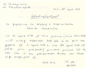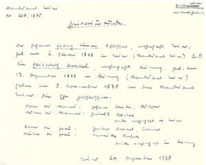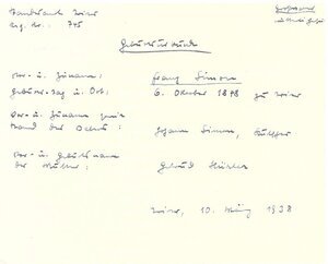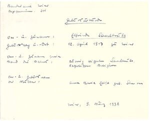 Handschriftliche Unterlagen zur Erlangung des kleinen Ariernachweises