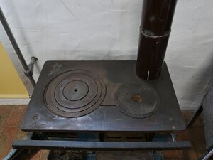 Kleiner, blau emaillierter Küchenherd Modell Fava N° 31° Kleiner Küchenherd im Stil des französischen Art Deco der 1920er und 1930er Jahre. Er besitzt mit Bratrohr (rechts)sowie Brennkammer und Aschekasten (links), Die Herdplatte oben besitzt zwei mit Ofenringen bedckte Löcher zum Einhängen von Töpfen, Pfannen, Kaffeeröstern etc. Rechts über dem Ofenrohr befindet sich eine Regulierschraube. Die Aussenwände sind mit Schamotte ausgekleidet. Der Ofen steht auf 4 Füßen, die fast so hoch sind wie der eigentliche Ofen. Über dem Ofenroht befindet sich die Inschrift: FAVA N° 31° Mehrere Zeitzeugen erzählten uns von kleine Küchenherden, die vor allem italienische Gastarbeiter von zuhause mitgebracht hatten. Auch wenn dies für diesen Herd nicht nachweisbar ist, liegt dies auf für diesen Herd nahe. Der Hersteller: Heute (2021) existiert eine Firma mit dem Namen FAVA mit Firmensitz in Cento (FE), Italien (liegt zwischen Ferrara und Bologna). Diese Firma stellt heute Produktionsstraßen für die Produktion von Pasta her.