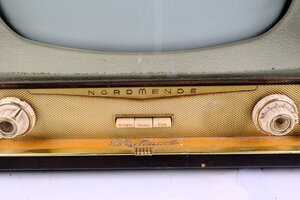 Der schwarz-weiss Fernseher "Diplomat" von NordMende wurde zwischen 1957 und 1958 produziert. Das Tischgerät, in einem hochglanz poliertem Holzgehäuse, ist mit einer 36 cm Bildröhre ausgestattet und verfügt nur über VHF Empfang (1. Programm). Alle Bedienelemnte sind unterhalb der Bildröhre, an der Frontseite angebracht. Eingebaut sind 2 Lautsprecher. Der Fernseher kostete im Fachhandel ca. 850 DM