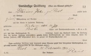 In diesem Dokument vom 29. Dezember 1921 wird einer Person namens Peter Bläsius aus Riol die Zahlung von insgesamt 118,65 Reichsmark an einen Herrn Schmitz aus Schweich quittiert. Bei der Summe handelte es sich um die Zahlung eines Steig-Pacht-Protokolls.