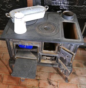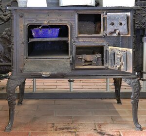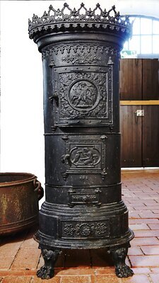 Es handelt sich um einen Regulierherd. Er besitzt eine Tür zu einer mit Schamotte ausgekleideten Brennkammer und eine darunterliegende Tür mit einem Schieberegler zur Regulierung der Luftzufuhr für die Asche. Links von diesen Türen befindet sich das Ofenrohr. Unter dem Ofenrohr ist eine Klappe für die "falsche Luft". Die mehrteilige Herdplatte hat zwei Aussparungen für Ofenringe und eine für einen Wasserkasten. Ein Drehregler am hinteren Ende der Ofenplatte ermögilcht es den Abzug am danebenliegenden Schornsteinanschluss zu regulieren. Besonders auffällig ist die mit vielen ornamentalen Verzierungen geschmückte Frontseite, ebenso die beiden Seitenseiten sowie der vier schmalen und eleganten Füße des Herdes. Der Hersteller des Ofens, die Amalienhütte war ein Eisenwerk in Bad Laasphe-Niederlaasphe. Sie zählte zu einer der jüngeren Hütten im Wittgensteiner Land, als sie von der Familie Jung 1850 in Betrieb genommen wurde. Jedoch reichte die Eisenverhüttung und -verarbeitung an diesem Standort bis ins frühe 18. Jahrhundert zurück. Das Eisenerz kam aus dem Schelder Wald. In einer Werbeanzeige von 1873 wirbt das Unternehmen u.a. mit "Öfen, Heerde, Maschinentheile, Gartenmöbel und verschiedene Gusswaaren – elegante Form und dünner Guss bei ausgezeichneter Haltbarkeit, direkt aus dem Hochofen gegossen." 1883 wurde die Amalienhütte in den Hessen-Nassauischer Hüttenverein integriert. Dieser wurde aufgrund der Weltwirtschaftskrise schrittweise und bis 1935 ganz vom Buderus-Konzern übernommen. In der Nachkriegszeit wurde die Ofenproduktion stark ausgebaut, aber bereits 1958 aufgrund der zunehmenden Bedeutung von Zentralheitungen eingestellt. Die Amalienhütte übernahm vorerst noch Auftragsarbeiten von den anderen Standorten und wurde 1975 endgültig stillgelegt. Heute sind nur wenige Gebäude der ehemaligen Hütte erhalten. Die ehemalige Transformatorstation ist heute ein Industriemuseum. Des weiteren sind die Werkswohnung des Hüttendirektors, ein Produktionsgebäude, das Wiegehäuschen vor der Werkszufahrt sowie Teile des Gleisanschlusses und der ehemalige Hüttenbahnhof vorhanden.